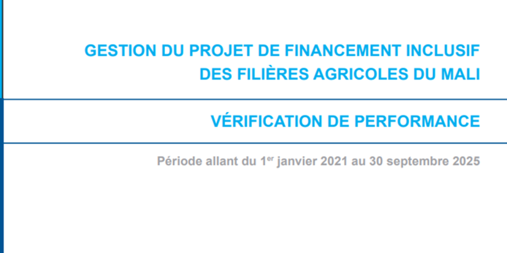 - Vérification de performance : Gestion du Projet de Financement Inclusif des Filières Agricoles du Mali