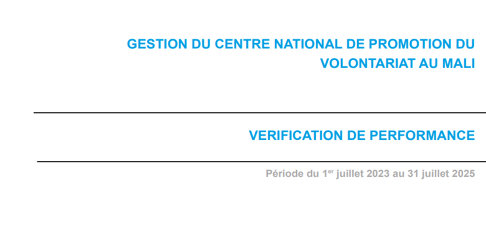 - Vérification de performance : Gestion du Centre National de Promotion du Volontariat au Mali