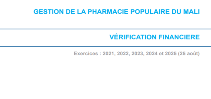 Rapports 28 janvier 2026 par Maïmouna Konate · Published 28 janvier 2026 Vérification financière : Gestion de la Pharmacie Populaire du Mali