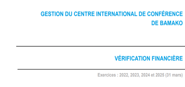 Rapports 24 novembre 2025 par Maïmouna Konate · Published 24 novembre 2025 Vérification financière : Gestion du Centre International de Conférence de Bamako