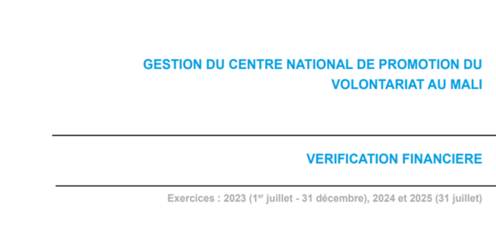 Rapports 26 novembre 2025 par Maïmouna Konate · Published 26 novembre 2025 Vérification financière : Gestion du Centre National de Promotion du Volontariat au Mali