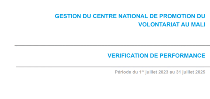 Rapports 26 novembre 2025 par Maïmouna Konate · Published 26 novembre 2025 Vérification de performance : Gestion du Centre National de Promotion du Volontariat au Mali