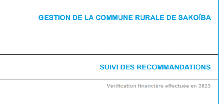 Rapports 24 novembre 2025 par Maïmouna Konate · Published 24 novembre 2025 Suivi des recommandations : Gestion de la Commune Rurale de Sakoïba