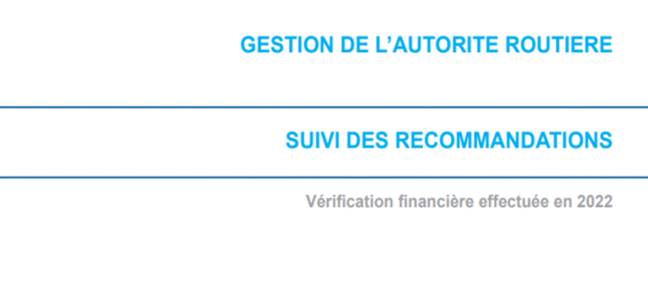 Rapports 7 novembre 2025 par Maïmouna Konate · Published 7 novembre 2025 Suivi des recommandations : Gestion de l’Autorité Routière