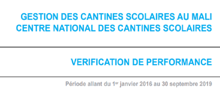 Rapports 16 février 2022 par arhissa · Published 16 février 2022 · Last modified 29 novembre 2023 Vérification de performance: Gestion des Cantines Scolaires au Mali, Centre National des Cantines Scolaires