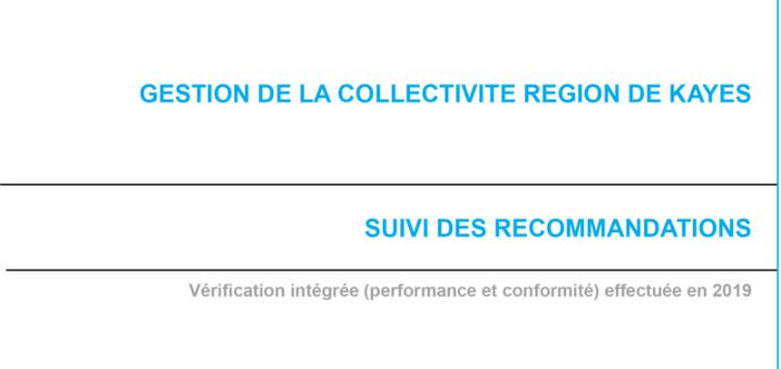 Rapports 1 février 2022 par arhissa · Published 1 février 2022 · Last modified 29 novembre 2023 Gestion de la Collectivité Région de Kayes: suivi des recommandations