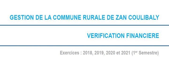 Rapports 21 avril 2022 par arhissa · Published 21 avril 2022 · Last modified 29 novembre 2023 Vérification financière: Gestion de la Commune Rurale de Zan Coulibaly