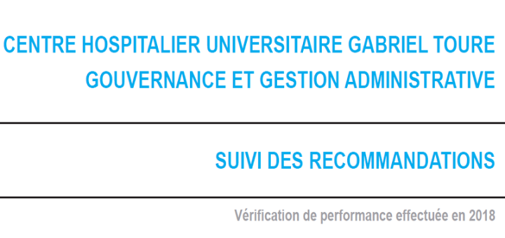 Rapports 5 janvier 2021 par arhissa · Published 5 janvier 2021 · Last modified 29 novembre 2023 Suivi des Récommandations (Vérification de performance effectuée en 2018) du Centre Hospitalier Universitaire « Gabriel Touré »: Gouvernance et gestion administrative