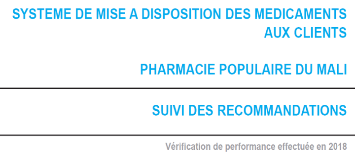 Rapports 8 janvier 2021 par arhissa · Published 8 janvier 2021 · Last modified 29 novembre 2023 Suivi des Récommandations de la Vérification de Performance effectuée en 2018 du Système de mise à disposition des médicaments aux clients-Pharmacie Populaire du Mali