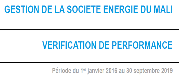 Rapports 12 janvier 2021 par arhissa · Published 12 janvier 2021 · Last modified 29 novembre 2023 Vérification de Performance: Gestion de la société Energie du Mali
