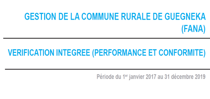 Rapports 28 mai 2021 par arhissa · Published 28 mai 2021 · Last modified 29 novembre 2023 Vérification intégrée (performance et conformité): Gestion de la commune rurale de Guegneka (Fana)