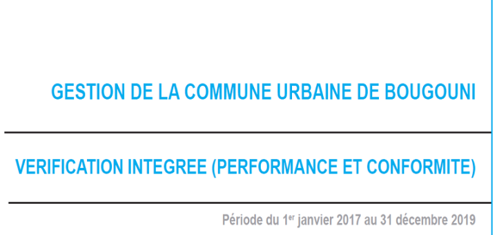 Rapports 18 juin 2021 par arhissa · Published 18 juin 2021 · Last modified 29 novembre 2023 Vérification intégrée (Performance et Conformité) : Gestion de la Commune Urbaine de Bougouni
