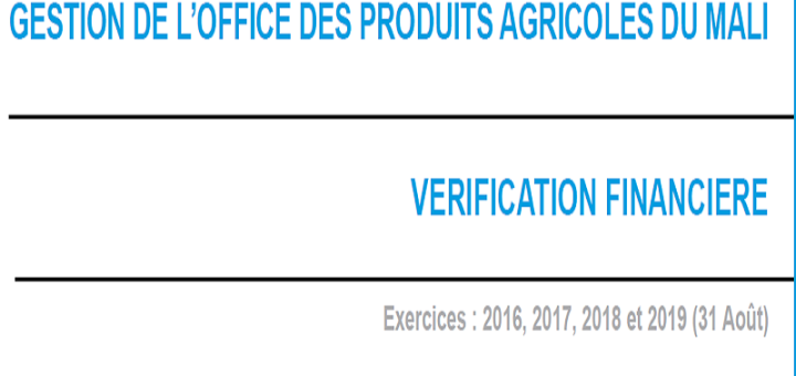 Rapports 23 septembre 2020 par arhissa · Published 23 septembre 2020 · Last modified 29 novembre 2023 Vérification financière : Gestion de l’Office des Produits Agricoles du Mali