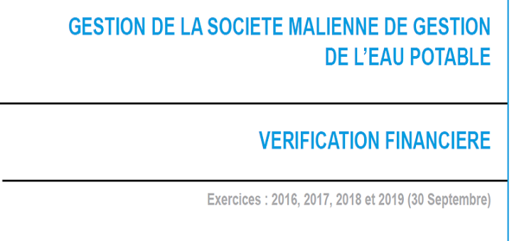 Rapports 13 octobre 2020 par arhissa · Published 13 octobre 2020 · Last modified 29 novembre 2023 Vérification financière : Gestion de la Société Malienne de Gestion de l’Eau Potable