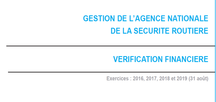 Rapports 12 novembre 2020 par arhissa · Published 12 novembre 2020 · Last modified 29 novembre 2023 Vérification financière : Gestion de l’Agence Nationale de la Sécurité Routière