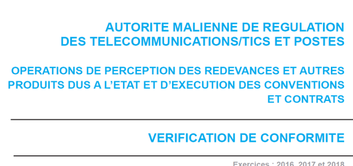 Rapports 2 mars 2020 par arhissa · Published 2 mars 2020 · Last modified 29 novembre 2023 Vérification de conformité : Autorité malienne de régulation des télécommunications/tics et postes Opérations de perception des redevances et autres produits dus à l’état et d’exécution des conventions et contrats