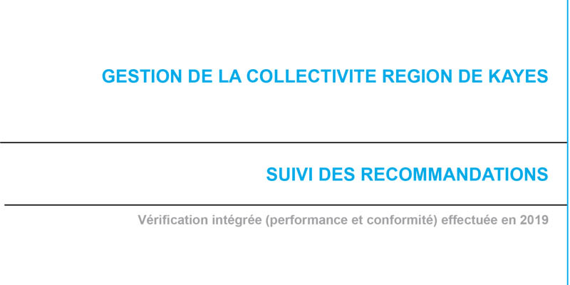 Gestion de la Collectivité Région de Kayes: suivi des recommandations Publié 1 février 2022 · Mis à jour 29 novembre 2023