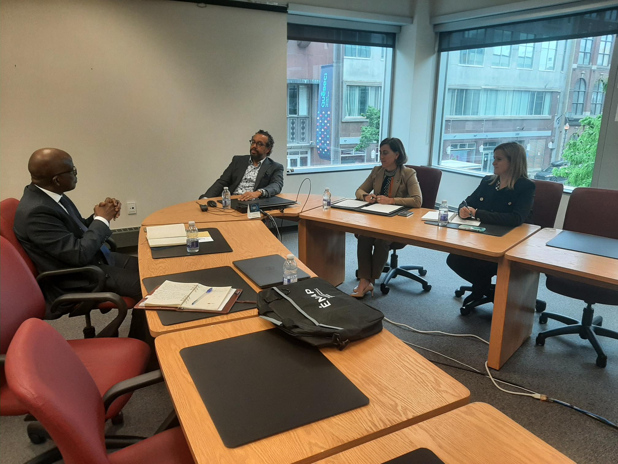 Jeudi 15 juin 2023, Rencontre au siège de L’ENAP à Québec de Monsieur le Vérificateur Général avec le Directeur des Services-Conseils de l’ENAP, Monsieur Jean-Francois GASCON. Madame Jacinthe GAGNON, Directrice des Affaires internationales, par Intérim et Madame Louise PICARD, Coordonnatrice et Conseillère aux affaires internationales ont également pris part à la rencontre.