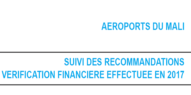 Suivi des recommandations de la vérification financière de « Aéroports du Mali » Publié 27 août 2020 · Mis à jour 29 novembre 2023