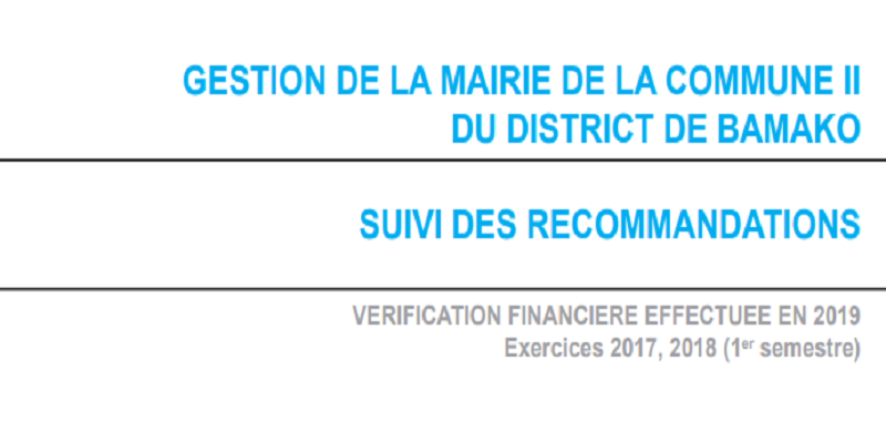 Suivi des recommandations: Gestion de la Mairie de la Commune II du District de Bamako Publié 25 avril 2023 · Mis à jour 29 novembre 2023