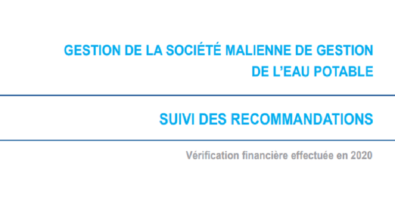 Suivi des recommandations: Gestion de la Société Malienne de la Gestion de l’Eau Potable Publié 24 février 2023 · Mis à jour 29 novembre 2023