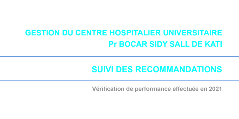 Suivi des recommandations : Gestion du Centre Hospitalier Universitaire Pr Bocar Sidy SALL de Kati Publié 25 octobre 2023 · Mis à jour 29 novembre 2023