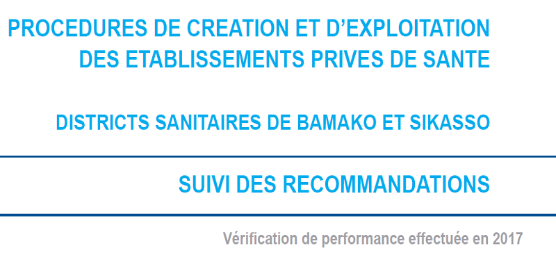 Suivi des recommandations : Procédures de création et d’exploitation des établissements privés de sante. Districts sanitaires de Bamako et Sikasso 1 avril 2020