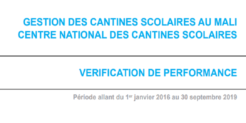 Vérification de performance: Gestion des Cantines Scolaires au Mali, Centre National des Cantines Scolaires Publié 16 février 2022 · Mis à jour 29 novembre 2023