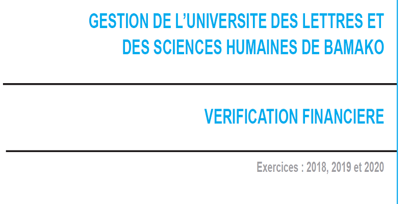 Vérification financière: Gestion de l’Université des Lettres et des Sciences Humaines de Bamako Publié 30 septembre 2021 · Mis à jour 29 novembre 2023