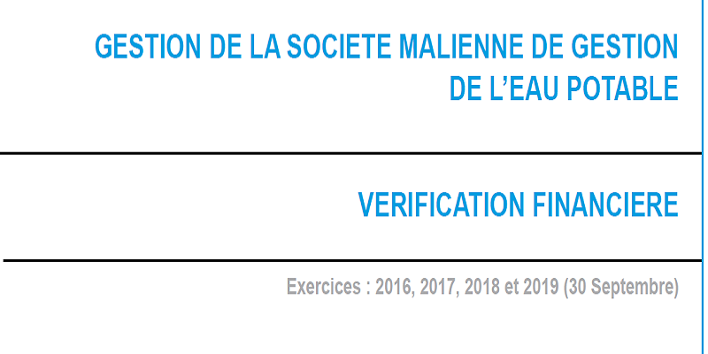 Vérification financière : Gestion de la Société Malienne de Gestion de l’Eau Potable Publié 13 octobre 2020 · Mis à jour 29 novembre 2023