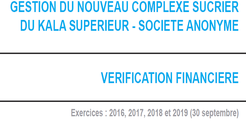 Vérification financière: Gestion du nouveau complexe sucrier du Kala Supérieur – Société Anonyme Publié 3 février 2021 · Mis à jour 29 novembre 2023