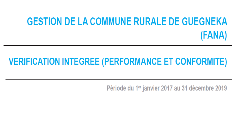 Vérification intégrée (performance et conformité): Gestion de la commune rurale de Guegneka (Fana) Publié 28 mai 2021 · Mis à jour 29 novembre 2023
