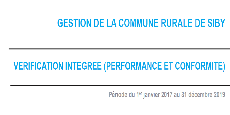 Vérification intégrée (Performance et Conformité): Gestion de la commune rurale de Siby Publié 29 juin 2021 · Mis à jour 29 novembre 2023